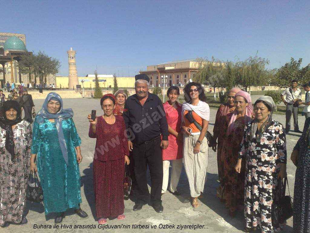 Özbekistan'da eski bir gelenek olan, düğün öncesi gelin ve damadın kalabalık bir toplulukla tarihi yerlerin ziyaret edilmesi ritüeline burada da şahit olduk. Öğlen yemeğinden sonra rehberimiz bizi geniş avlusu olan bir eve götürdü ve orada Özbek halk müziğini dinleme fırsatı yakaladık. Bu arada yemekler üzerine tek söyleyebileceğim şey çok lezzetsiz olduklarıdır. Anadolu mutfağını taparcasına seven bizler için burası tam bir eziyet oldu tıpkı Avrupa'daki ülkelerde olduğu gibi. Rejim yapmak isteyen ama bir türlü beceremeyen kızlarımıza Özbekistan'da bir hafta geçirmelerini tavsiye ederim. Dönüşte her biri mankenlik ajansına başvurabilir. Bu arada Ortadoğu coğrafyasında arak, rakı olarak adlandırılmasına karşın burada votka anlamında kullanılmaktadır, ilgilenenlere duyurulur. Her şey bir yana Khiva muhteşem bir yer, görmeye değer.