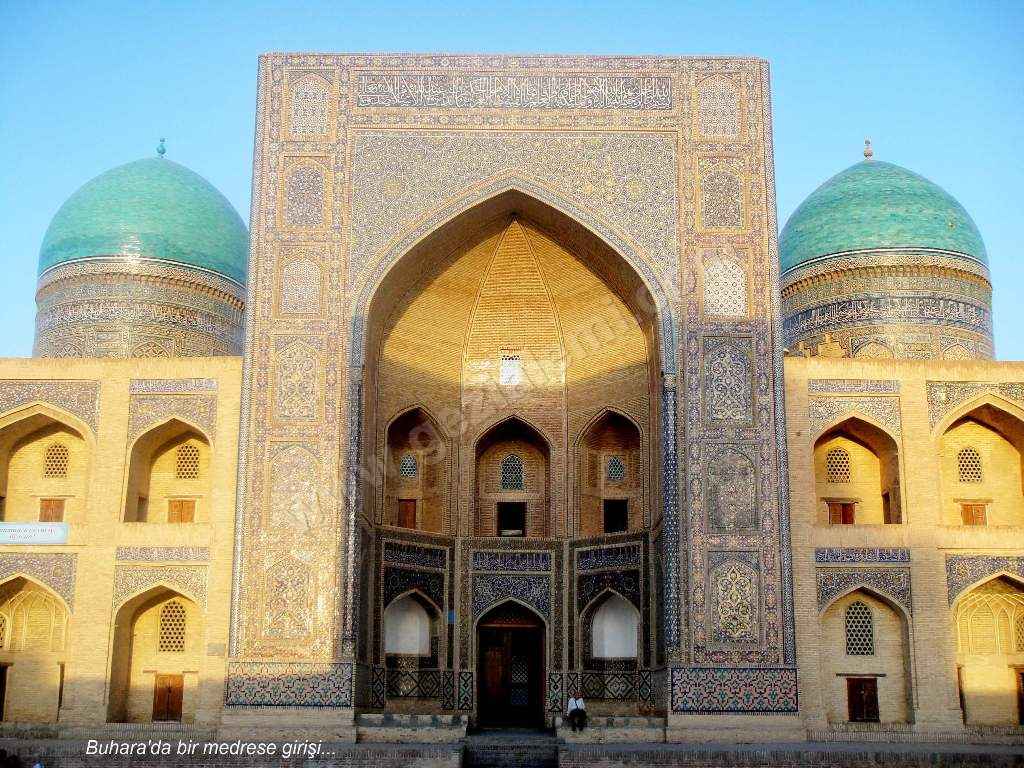 Buharadayız. Namı diğer Buhara-ı Şerif. İslamiyet'te en değer verilen ve şeriflik olarak adlandırılan yedi kentten biri. Tek kelimeyle inanılmaz bir şehir. Güzel olan bir tarafı da tarihe olan saygıları. Özellikle eski Buhara denilen bölgede modern anlamda yapılaşmaya gidilmemiş. Medrese ve camiler ön planda ve bunlar şehrin en yüksek yapıları. Çölün ortasında kurulmuş bir kent olduğu için serinlemek amacıyla şehrin birçok yerine 120'nin üzerinde havuz yapılmış ancak günümüz itibariyle bunlardan sadece 27 tanesi kalmış. Bu havuzların birinin etrafında yemek yiyebileceğiniz ve çay- kahve içebileceğiniz mekanlar mevcut. Buralarda şaşlık (şiş kebap) yiyebilir, yanında Sarbast (bira) içebilirsiniz.